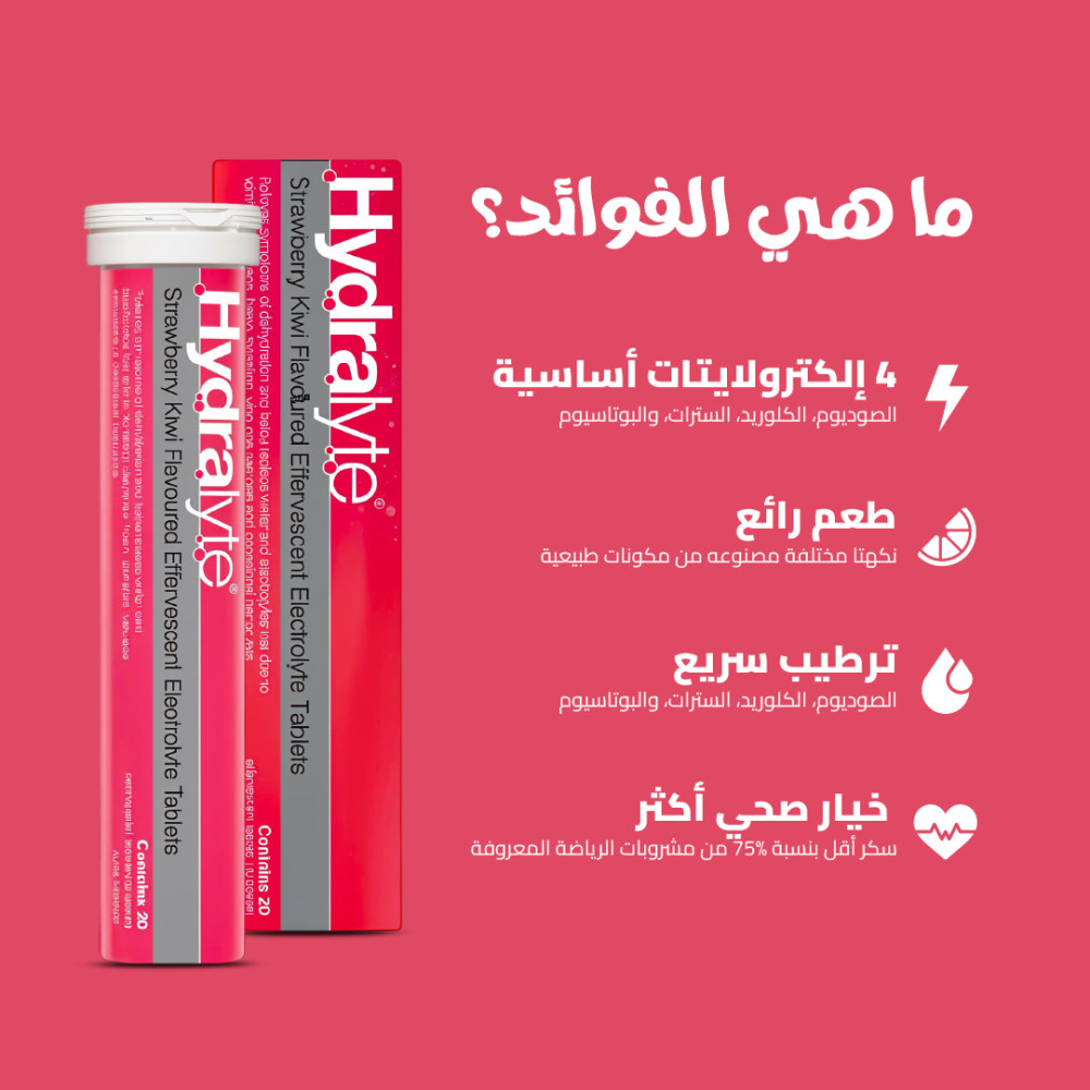لقد ابتكرنا تركيبة هيدرالايت بعناية، تجمع بين توازن دقيق من الماء والإلكترولايتات مع كمية مدروسة من السكر. نستخدم الجلوكوز بنسبة مثالية تعزز امتصاص السوائل بسرعة وفعالية. وعلى عكس مشروبات الرياضة المليئة بالسكريات، نحرص على أن تبقى الكمية في هيدرالايت بالقدر الأمثل – لا أكثر ولا أقل.