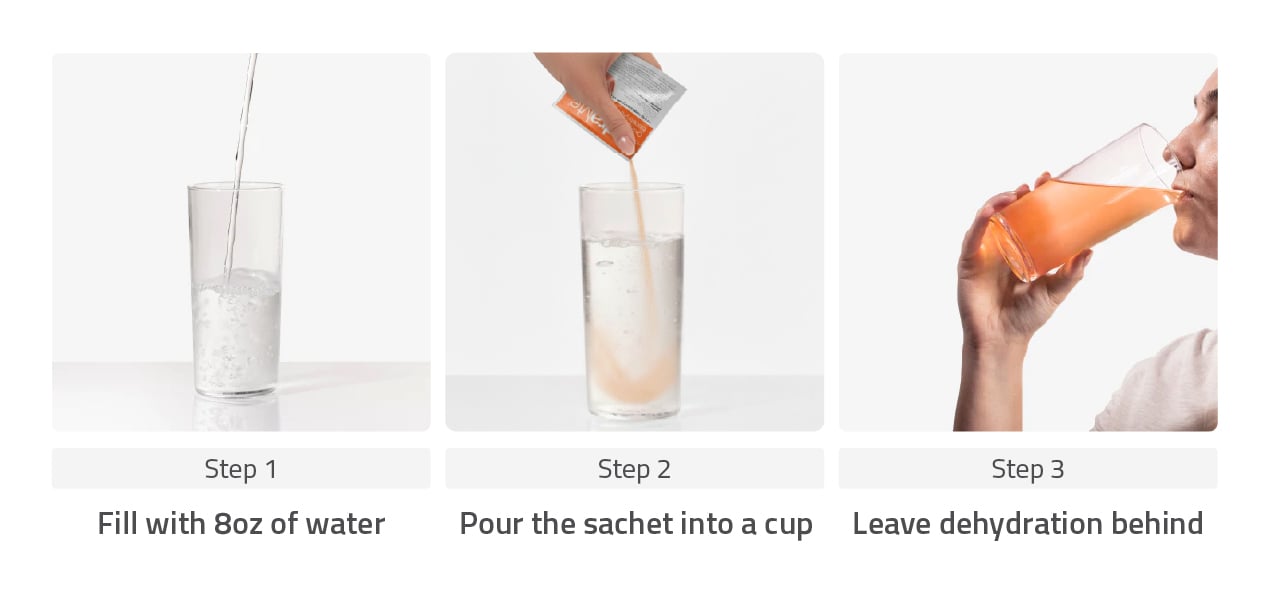 Our formula is sweet on hydration, not on sugar. We created the formula which uses a precise amount of water, electrolytes and a dash of sugar. Yes, sugar. An exact sugar (glucose) to electrolyte ratio that accelerates fluid absorption. However, unlike sports drinks, we use the optimal amount of sugar, not a gram more. expalin in arabic