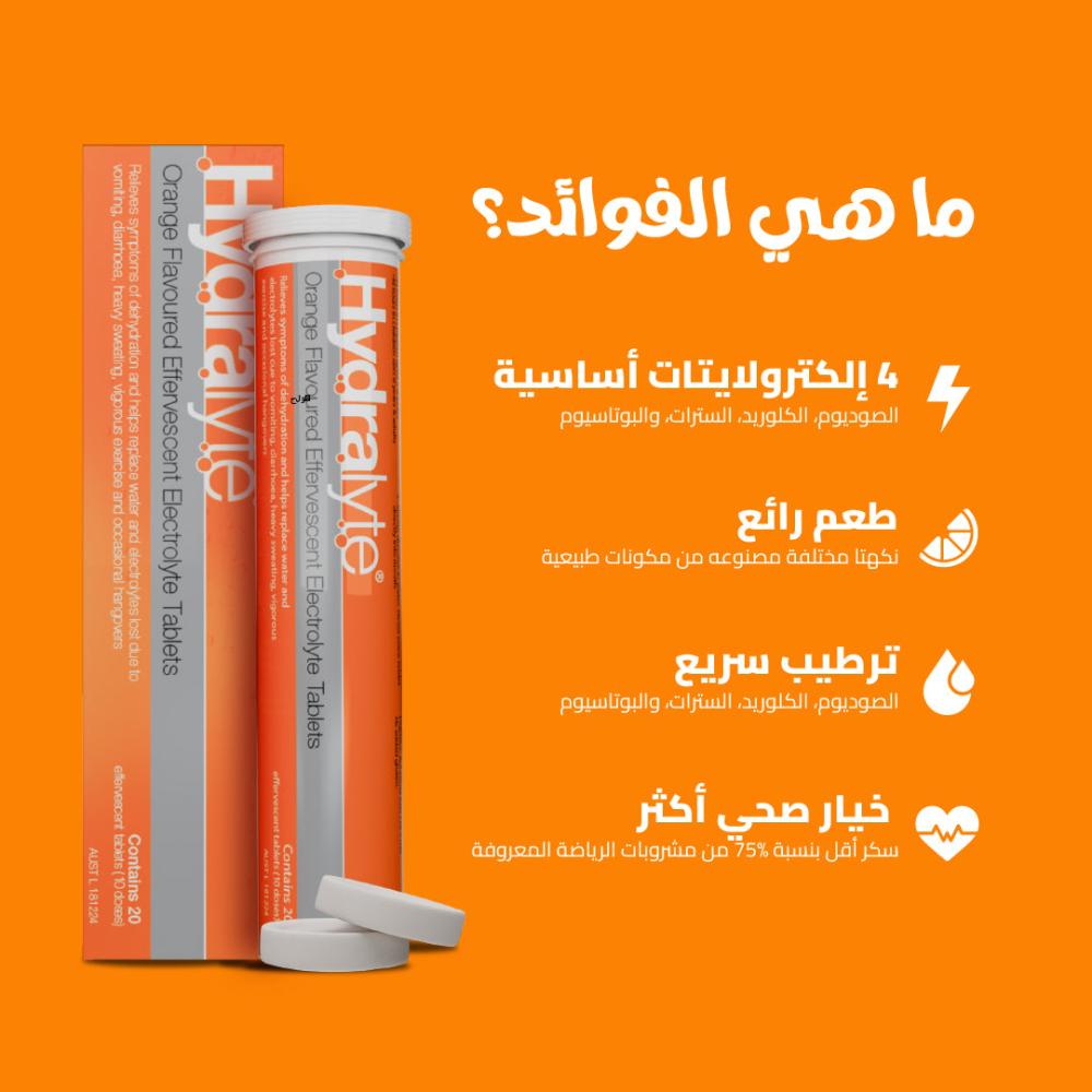 Our formula is sweet on hydration, not on sugar. We created the formula which uses a precise amount of water, electrolytes and a dash of sugar. Yes, sugar. An exact sugar (glucose) to electrolyte ratio that accelerates fluid absorption. However, unlike sports drinks, we use the optimal amount of sugar, not a gram more. expalin in arabic
